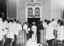 | Множество убогих и «болезных» пришли в поисках исцеления | Купальня с толпами народа | Келья Серафима Саровского | |