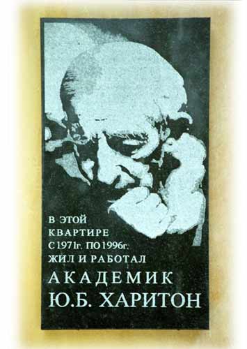 Дом академика Харитона знают практически все ученые ВНИИЭФ. Многие часто приходили сюда по приглашению Юлия Борисовича для обсуждения различных проблем. Почти ежедневно в одном из окон второго этажа, там, где находился кабинет Юлия Борисовича, глубокой ночью горел свет: Харитон работал. Юлию Борисовичу нравился его дом. В саду посадили кустарник, который со временем пышно разросся, березки, две пушистые серебристые ели, много цветов. Ю.Б. любил посидеть на скамейке, послушать пение птиц, побеседовать с близкими и друзьями. Любил пройтись по дорожке вокруг дома, наслаждаясь красотой окружающего мира. Обычно это бывало по вечерам. А утром, ровно в 7.50- Ю.Б. был очень пунктуален и требователен к себе - у калитки ждал служебный автомобиль, и Юлий Борисович уезжал на работу, где часто задерживался до позднего вечера. Таким в течение многих лет был напряженный ритм жизни научного руководителя ВНИИЭФ.