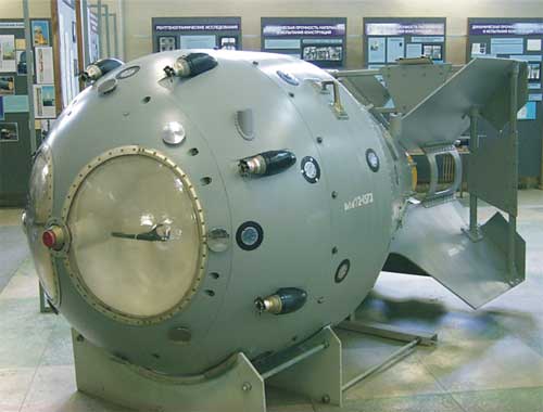 Большое внимание посетителей всегда привлекает изделие, которое подтвердило не только равные возможности наших ученых, но и их приоритет. Это знаменитая "слойка" РДС-6с- первая в мире водородная (термоядерная) бомба. В работе над ней активное участие принимал А. Д.Сахаров, тогда молодой сотрудник теоретической группы, руководителем которой был выдающийся российский физик И. Е. Тамм.