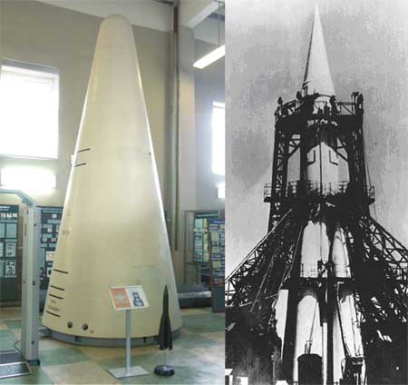 Во второй половине 50-х годов в распоряжение наших военных начали поступать первые ракеты. В музее представлены замечательные экспонаты, рассказывающие о первом этапе становления оружейного ядерного комплекса СССР на базе ракетной техники. Среди них своими габаритами выделяется головная часть знаменитой ракеты Р-7, ставшей носителем нашего первого боевого заряда стратегического назначения мощностью 3 Мт. Этот комплекс находился на вооружении ракетных войск СССР с 1960 по 1966 годы. Ракета Р-7 имеет прямое отношение к истории освоения космического пространства: 4 октября 1957 года она вывела на орбиту первый советский спутник Земли, 12 апреля 1961 года - корабль "Восток-1", пилотируемый Юрием Гагариным. Ракету Р-7 отличала большая дальность полета (8500 км) и очень высокая надежность.