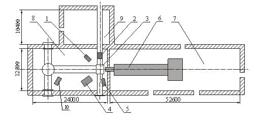 облучательный зал; 9 - реакторное помещение;