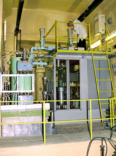 дистанционно на двух специальных тележках. Реактор оснащен пневматическим ударно-испытательным стендом