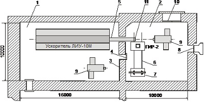 ускоритель СТРАУС-2; 5 - ускоритель АРСА; 6 - ускоритель ЛИУ-30; 7 - ускорительный зал; 8 -
