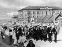 | Демонстрация 1 мая | Первые жилые дома | Идет строительство | Ударники труда |